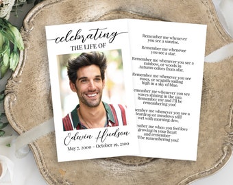Making Memorial Cards : Memorial Service Keepsake Photo Memory Card Handout Funeral Guests Memorial Cards For Funeral Memorial Cards Memorial Service - If you are looking for a memorial card template that's easy to customize, this sample here is for you.. Choose from a variety of layouts, images and backgrounds and then select a special verse, poem or prayer to complete your card. Create a blank funeral program. We will then customize your memorial/prayer card and email you a proof to approve. Memorial cards are keepsakes distributed at funerals, memorial services or celebrations of life ceremonies that provide lasting tributes to loved ones who died. Memorial cards are small, strong, laminated cards (about the size of a playing card) that pay tribute to the deceased.